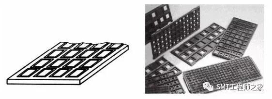 托盘由碳粉或纤维材料制成,用于要求暴露在高温下的元件托盘通常具有 150℃或更高的耐温。托盘铸塑成矩形标准外形,包含统一相间的凹穴矩阵,如图4所示。凹穴托住元件,提供运输和处理期间对元件的保护。间隔为在电路板装配过程中,可保障为用于贴装的标准工业自动化设备提供准确的元件位置。元件安排在托盘内,标准的方向是将第一引脚放在托盘斜切角落。